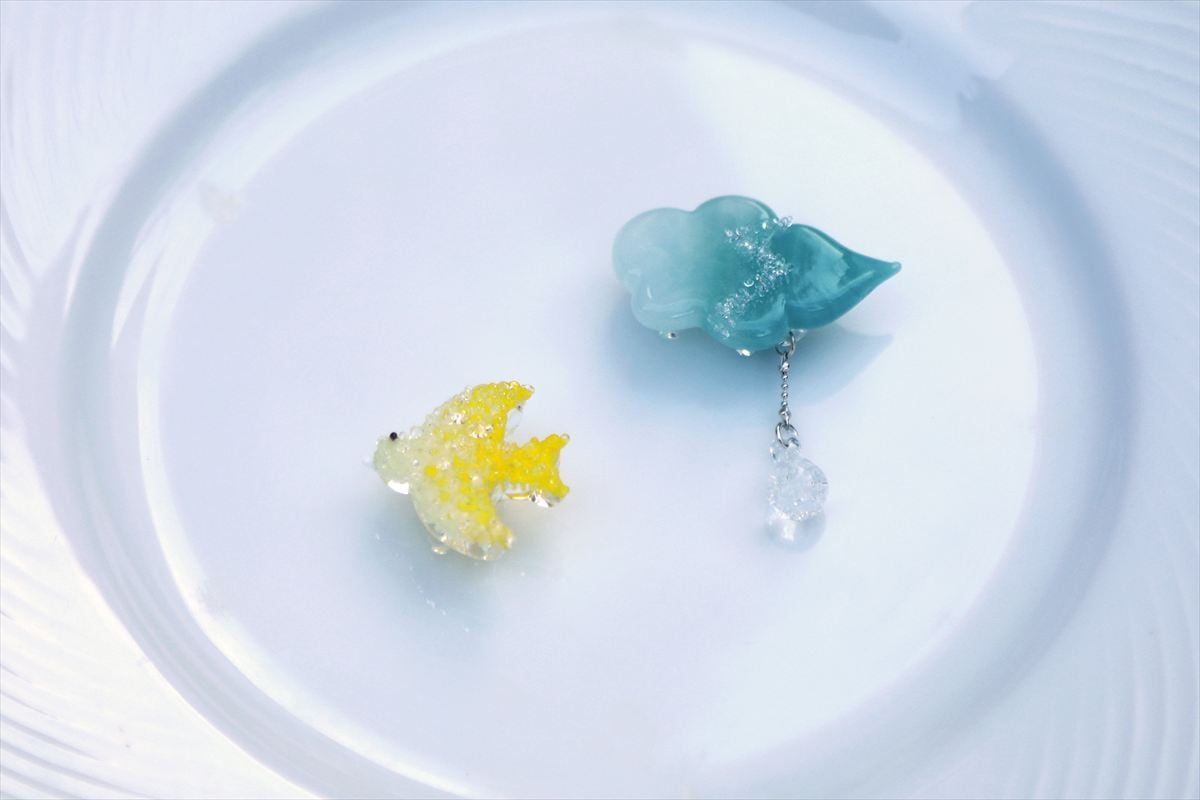 新たな魅力を纏う「彩告島・雲にしずく」。ガラスの伝統技法と現代デザインが調和した帯留めのアイテムとして、和装に華やかなエッセンスをプラスします♪